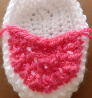 stitch in loose loops around sole. Fasten off. (see abbrev for crab stitch)