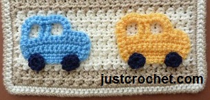 Car Motif x 2 - With 4.00mm hook and a contrast color, ch13, 1sc in second ch from