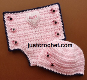 Hope you enjoy this free baby crochet pattern for a diaper cover and hat.