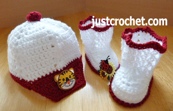 Hope you enjoy this free crochet pattern for a peaked cap & booties.