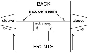 folds to shoulder seams sew sleeves in position. Join side and sleeve seams. (see