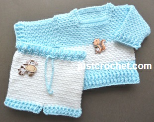 Enjoy this free crochet pattern for a woven sweater & pants set.
